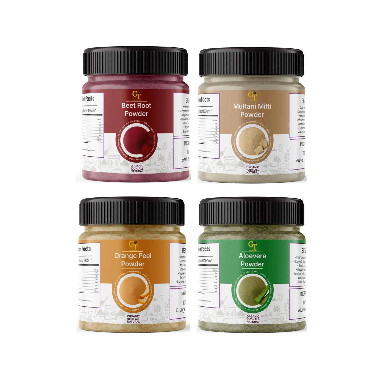 Beetroot, Multani Mitti, Orange Peel & Aloe Vera Powder Combo (100g Each) | 4-in-1 Herbal Face Pack