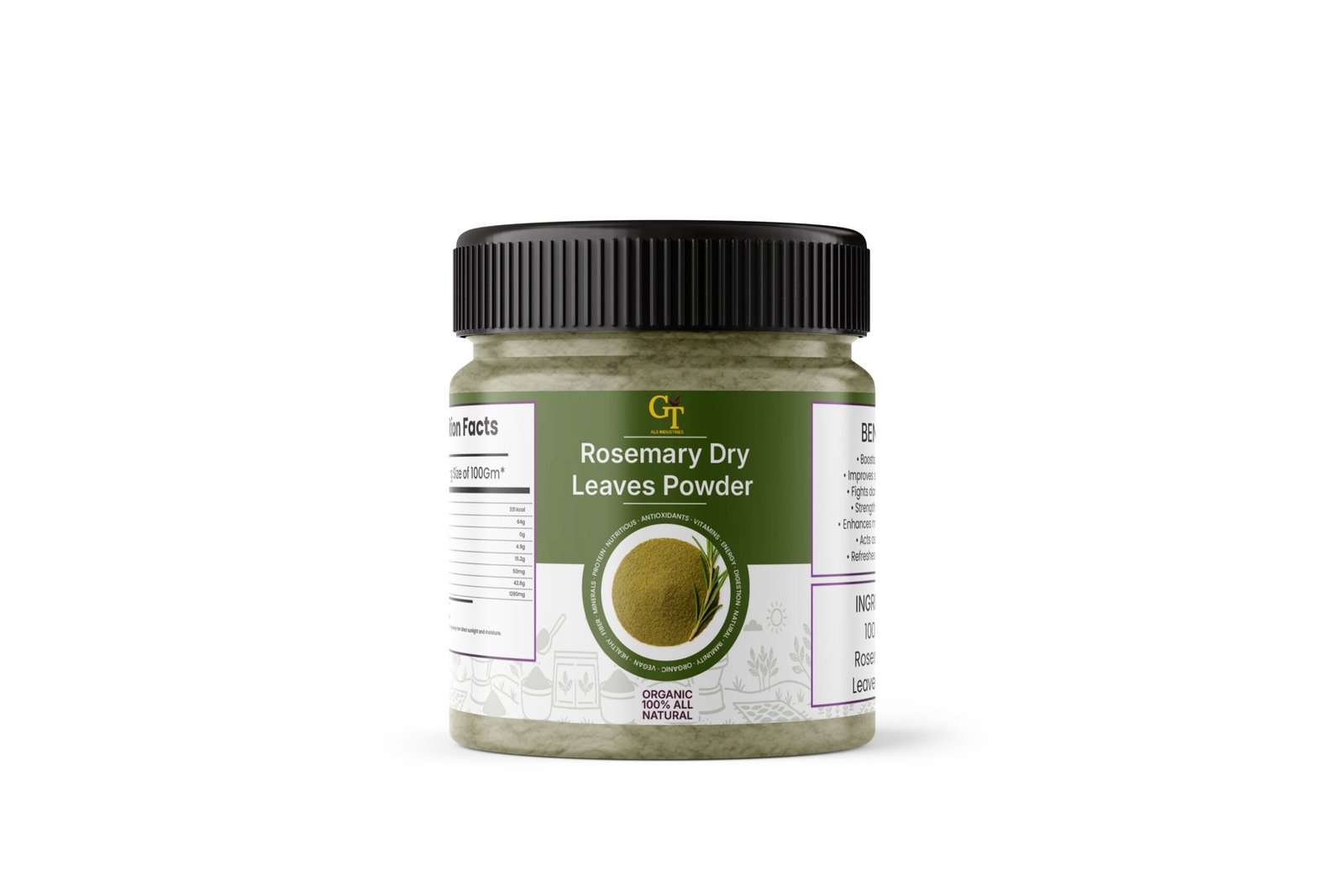 Golden Touch Rosemary Dried Leaves Powder is a premium quality, 100% natural herbal product made from carefully dried rosemary leaves. Known for its aromatic fragrance and powerful antioxidants, rosemary powder is perfect for culinary, beauty, and wellness applications.