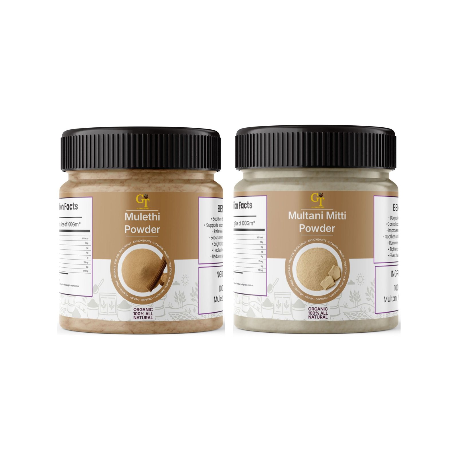 Golden Touch Natural Multani Mitti & Mulethi Powder Combo is a powerful herbal skincare solution designed to cleanse, brighten, and improve overall skin texture naturally. This combination works effectively to control oil, reduce acne, and promote an even skin tone.