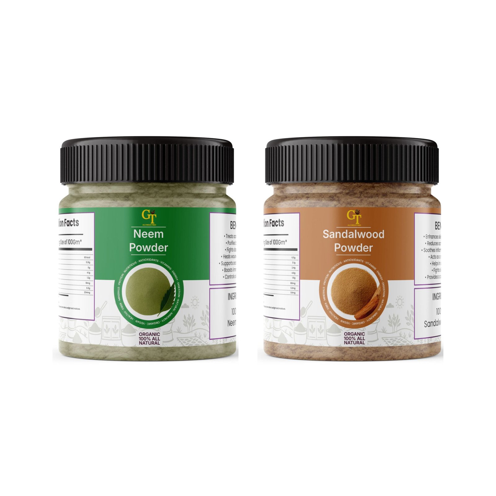 Neem powder is known for its antibacterial properties that help reduce acne, pimples, and skin irritation. Sandalwood (Chandan) powder provides a soothing and cooling effect, helping to calm the skin, reduce redness, and enhance natural glow.