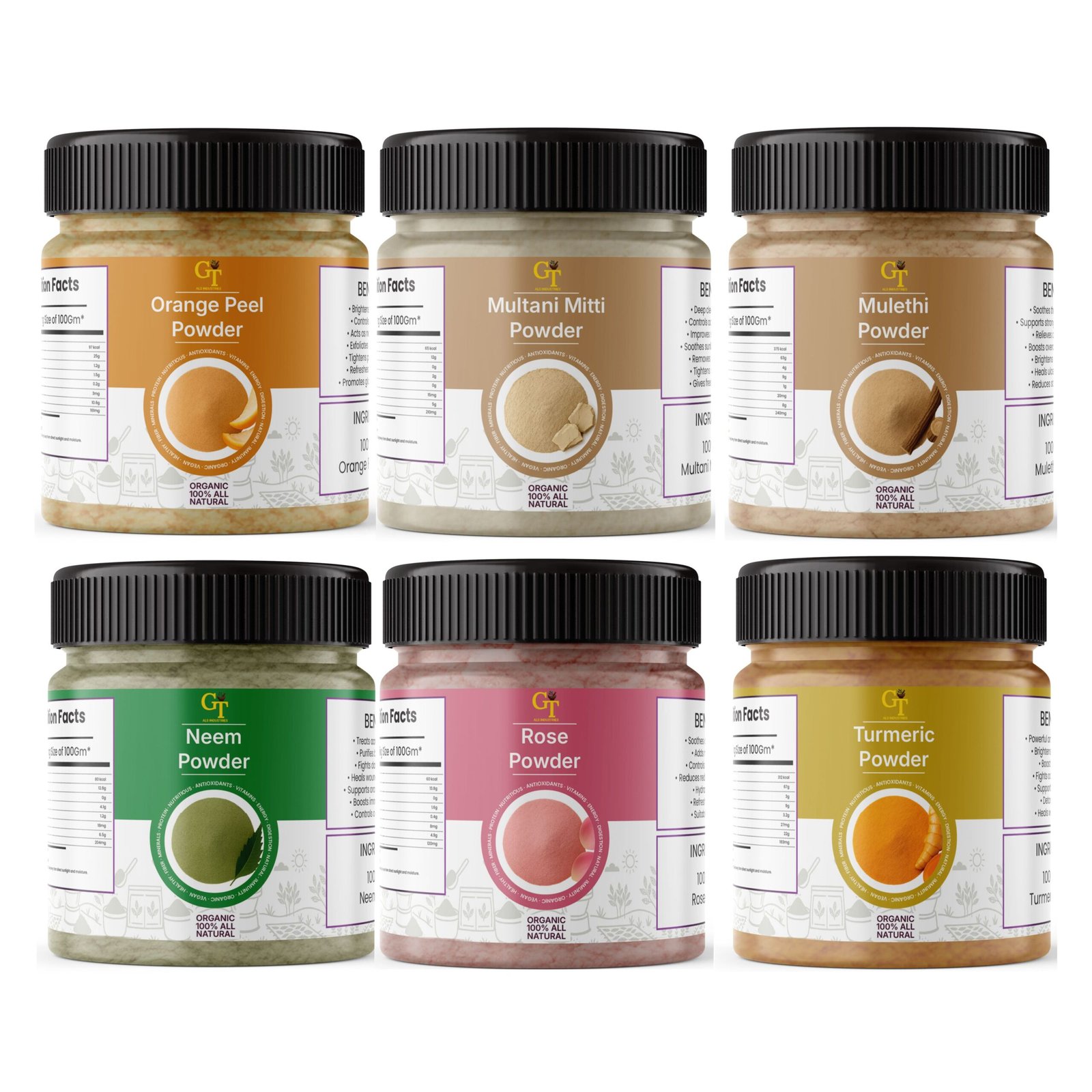 Golden Touch Natural 6-in-1 Herbal Face Pack Powder is a powerful blend of traditional Ayurvedic ingredients crafted to give your skin a natural glow and deep nourishment. This unique combination of Orange Peel, Multani Mitti, Mulethi, Neem, Rose, and Turmeric works together to cleanse, brighten, and revitalize your skin.